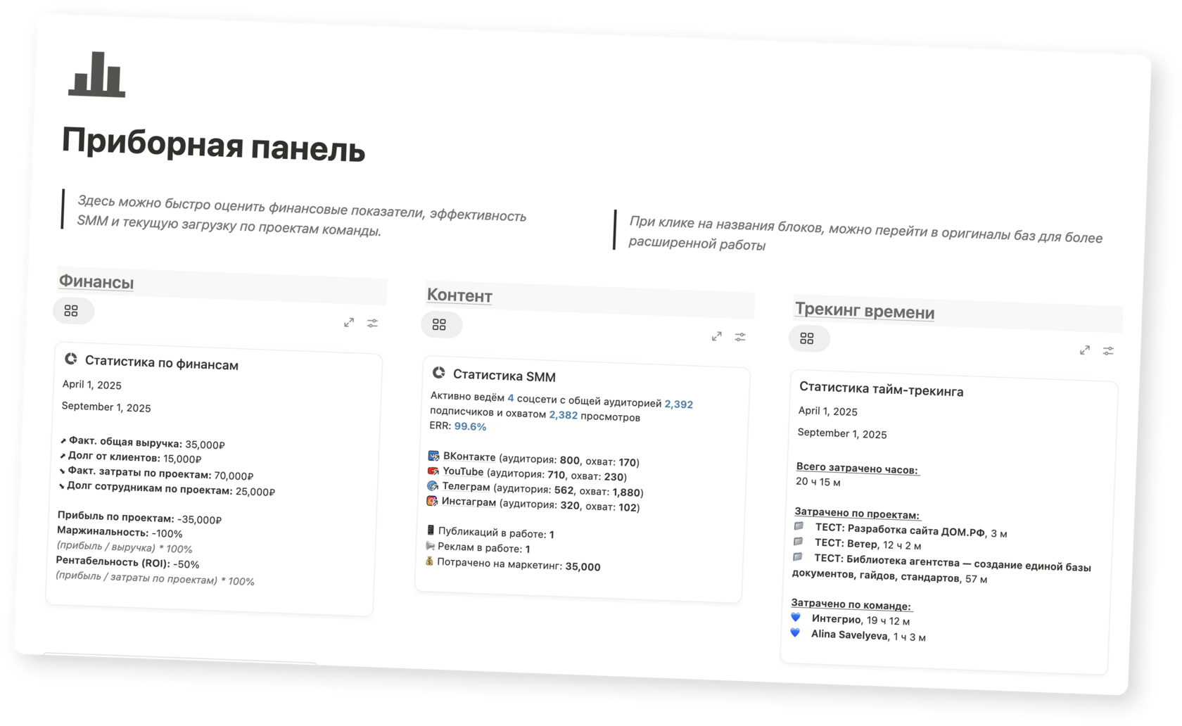 Если подольше: Задача перед Алиной и ее командой стояла небанальная, тк наша компания имеет узкую инженерную специфику и в данный момент настраивает деловые процессы внутри своего бизнеса, поэтому исследуя возможности платформы notion, мы исследовали и свой собственный проект. В качественной разработке важно, какие вопросы задают и какие варианты предлагают. В нашем случае, Алина стала нашим проводником и помощником в мире notion. Алина с изрядной долей креативности подошла к решению наших задач, терпеливо относилась к нашим дискуссиям и всегда поддерживала обратную связь.